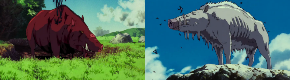 - 숲의 멧돼지 신으로, 인간의 공격으로 상처를 입고 점차 증오와 절망에 물듦.